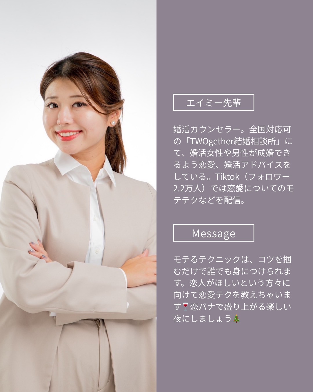 TWOgether結婚相談所、婚活カウンセラーのエイミーです。