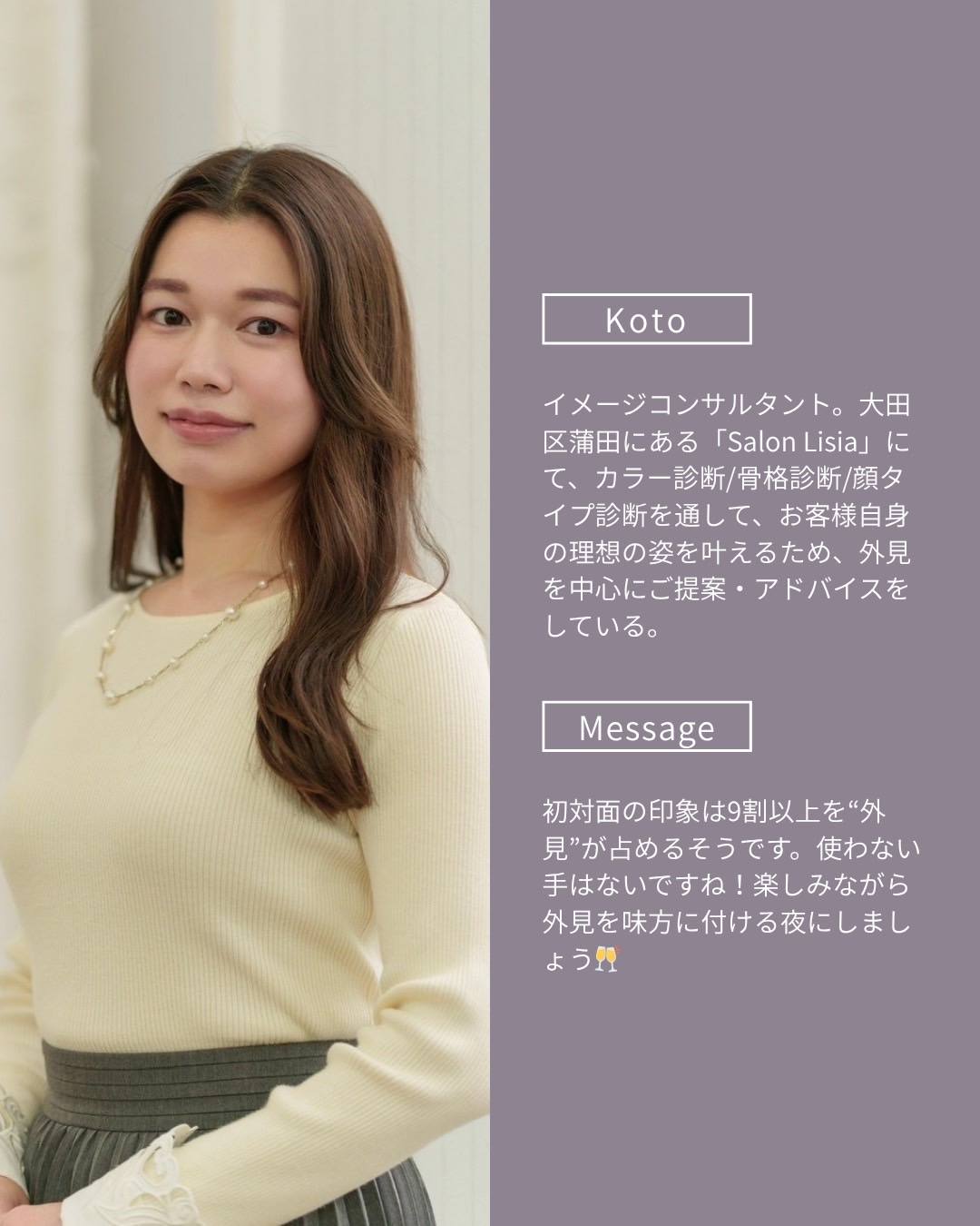 この会ですがなんとプロのイメージコンサルタントのkotoさんとの開催ですので、